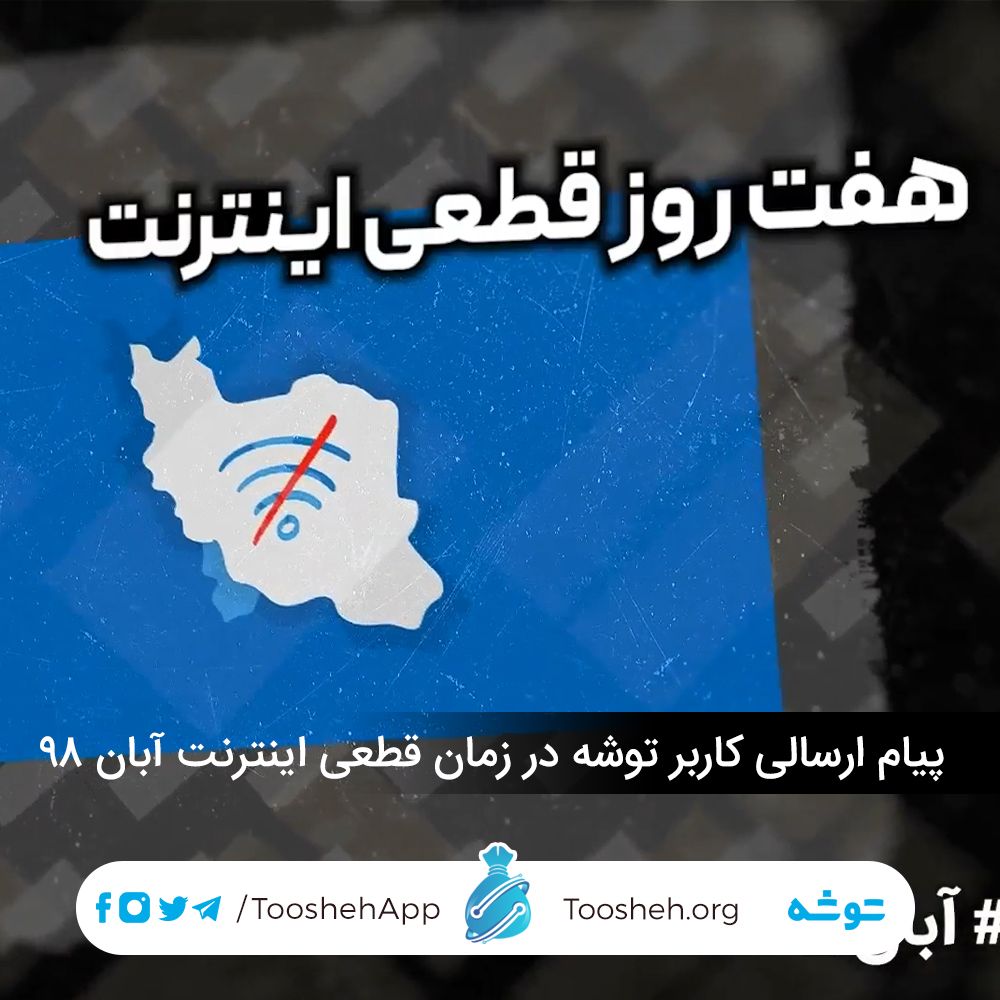 مدیر سایت2021-04-02 14:32:442021-04-02 14:32:44پیام ارسالی کاربر توشه در زمان قطعی اینترنت آبان 98
