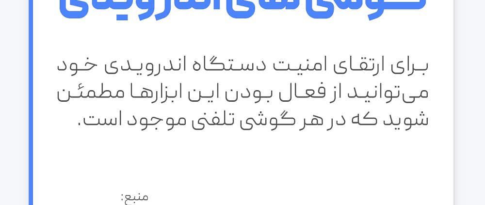 برای ارتقای امنیت دستگاه اندرویدی خود می‌توانید از فعال بودن این ابزارها مطمئن شوید که در هر گوشی تلفنی موجود است.