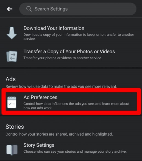 - اکنون به پایین اسکرول کنید و روی “Ad Preferences” کلیک کنید.