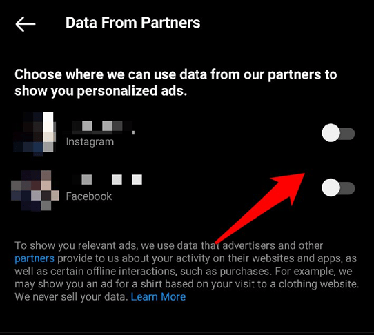 با این کار، تبلیغات هدفمند در اینستاگرام و فیسبوک برای شما نمایش داده نمیشود. اگرچه این امر مانع نمایش کامل تبلیغات اینستاگرام به شما نخواهد شد، اما ارتباط آنها کمتر خواهد بود؛ زیرا سیستم عاملهای رسانههای اجتماعی (اینستاگرام و فیسبوک) نمیتوانند از طریق برنامههای شخص ثالث به دادههای شما برای تبلیغات هدفمند دسترسی پیدا کنند.